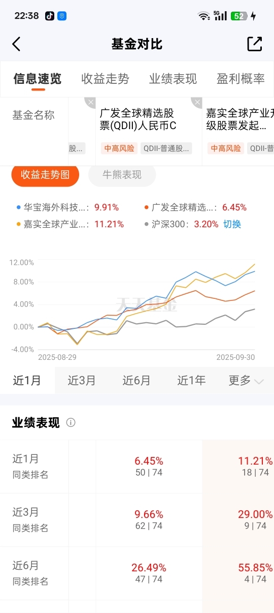 可以看出嘉实全球产业升级股票C在同类产品中竞争力还是很强的,近一年来收益也有51.42%收益比较明显,小白之前也入手了这只基,还是很看好美股发展的,希望能够继续往上冲。