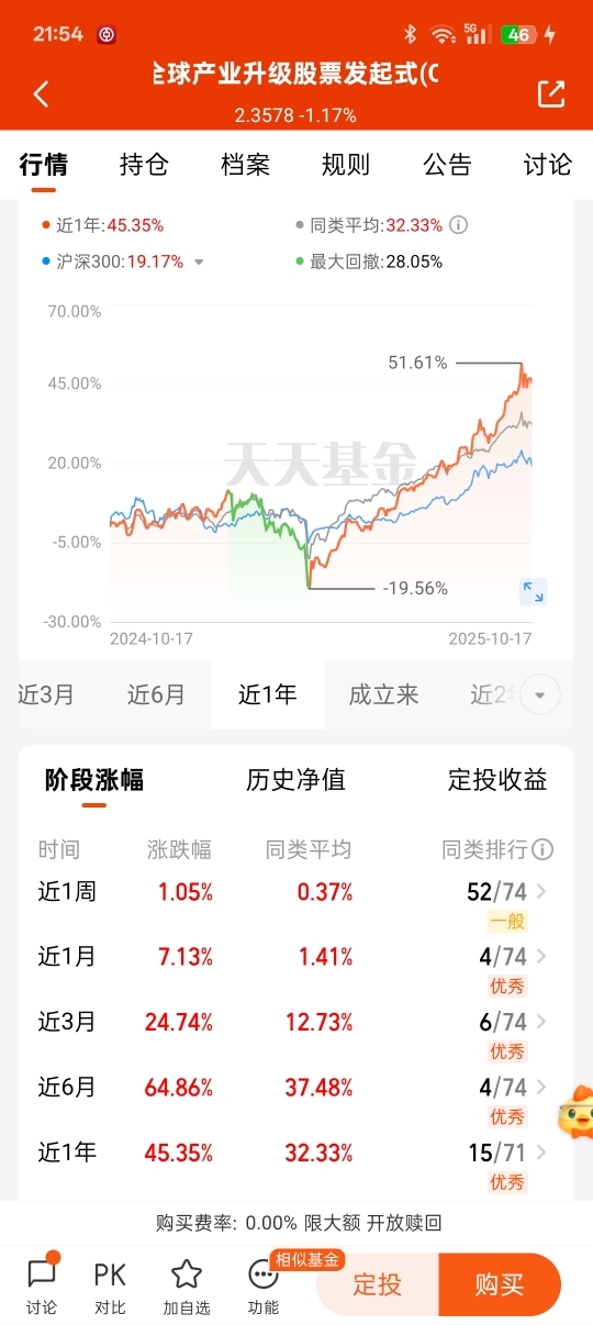截止目前美股三大指数收涨,三大股指高开高走,科技股强势领涨,今日A股港股美股表现都不错。台积电最新财报显示EPS和营收创纪录,反映AI芯片需求旺盛。英伟达、苹果等客户资本支出未放缓,印证AI算力产业链景气度。我一直持有的$嘉实全球产业升级股票发起式(QDII)C$ 表现不错,近六个月涨幅64.86%,它重仓全球半导体设备、新能源整车等产业龙头,如应用材料、特斯拉登,小白对全球市场升级的主题保持看好,继续持续关注。