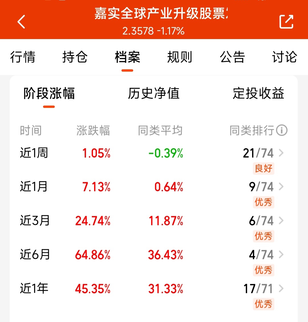 今日市场延续暖意,A股三大指数集体收涨,与隔夜美股的强势表现形成共振。全球科技板块回暖,展现出科技创新的蓬勃活力。在此背景下, $嘉实全球产业升级股票发起式(QDII)C$ 展现出良好的配置价值。该基金今日估值上涨1.69%,近一年累计收益已达45.35%,业绩表现满意。