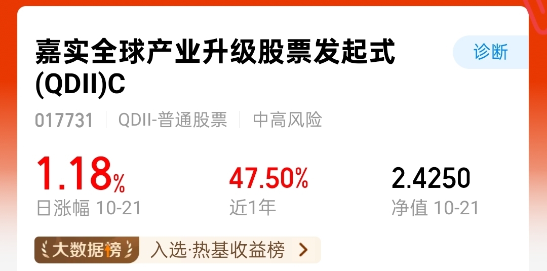 近期全球科技股表现强烈,我了解的$嘉实全球产业升级股票发起式(QDII)C$昨日