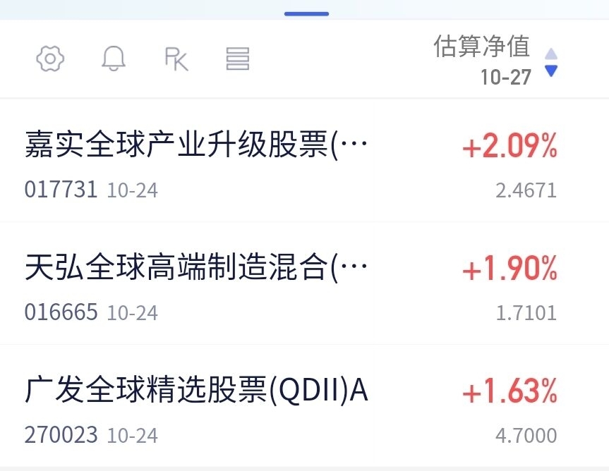 10月27日海外科技基金估值来了啦。上周五纳斯达克指数上涨了1.15%,$嘉实全球产业升级股票发起式(QDII)C$ 目前估值上涨2.09%,近3个月上涨了29.02%,近半年上涨了64.64%,业绩显著领先于同类基金啊。