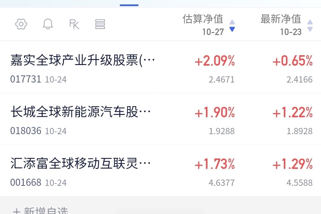 10月27日海外科技基金估值更新。上周五纳斯达克指数上涨1.15%,带动$嘉实全球产业升级股票发起式(QDII)C$ 估值上涨2.09%;其阶段性业绩表现突出,近3个月涨幅达29.02%,近半年更是飙升64.64%,显著跑赢同类基金。$长城全球新能源车股票发起式(QDII)C$ 目前估值上涨1.90%,也不差啊。