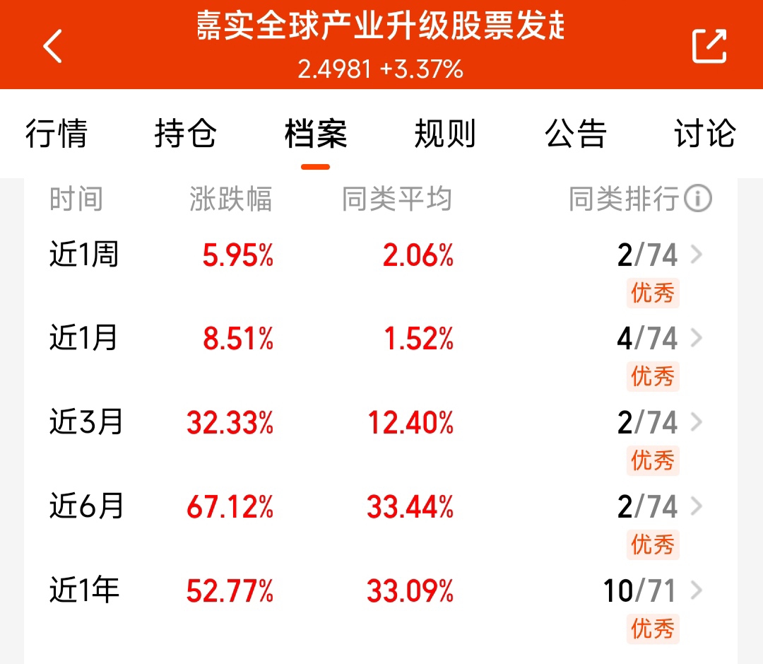 该基金昨日净值上涨3.37%,近3个月净值上涨32.33%,近一年收益上涨52.77%,中长期业绩表现稳健,持续看好!