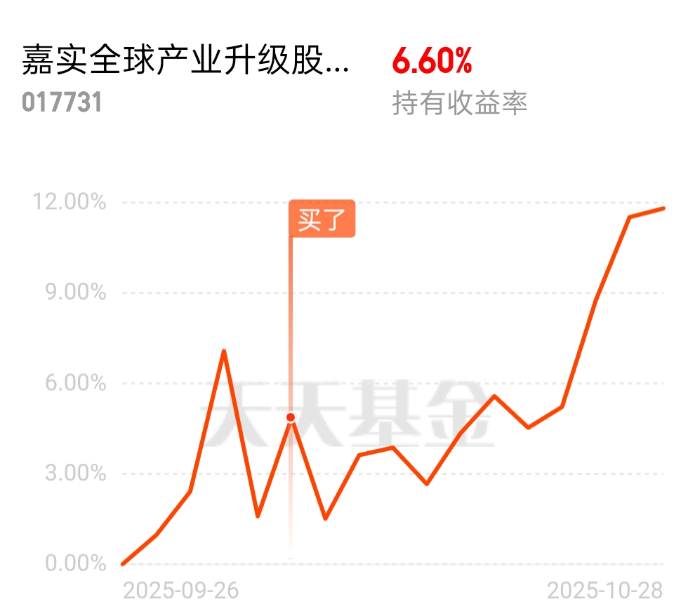 还不错,今天大盘一路拉升,科技依旧是主线。$嘉实全球产业升级股票(QDII)C$