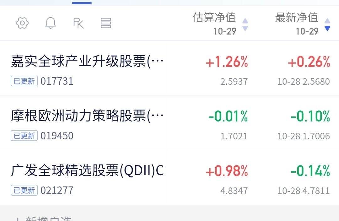 10月29日海外基金净值来啦。嘉实、摩根、广发等热门基金都更新了。$嘉实全球产业