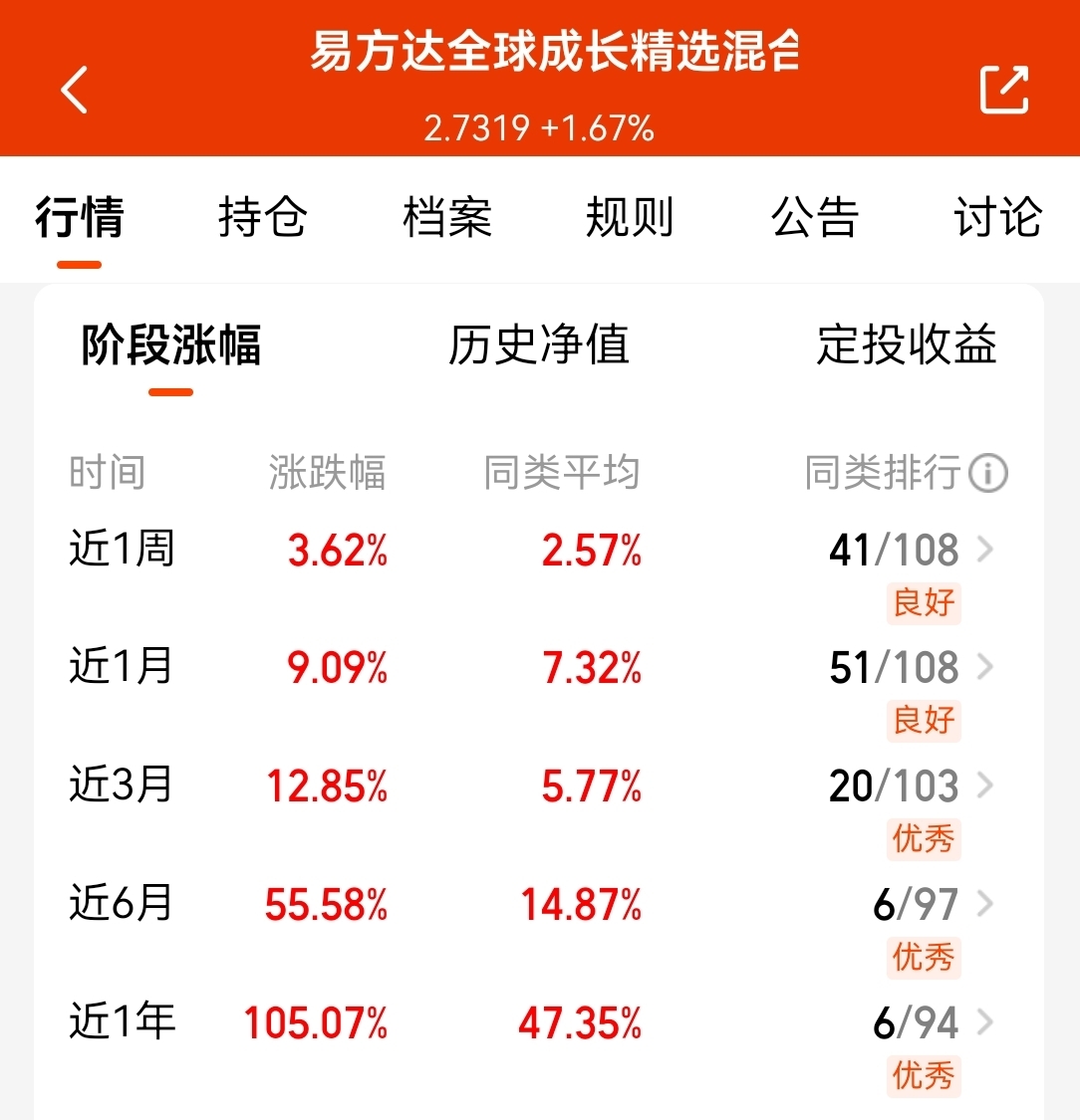 而这支$易方达全球成长精选混合(QDII)人民币C$ 聚焦全球科技,持仓覆盖美股、A股、港股等多个市场,主打一个均衡;