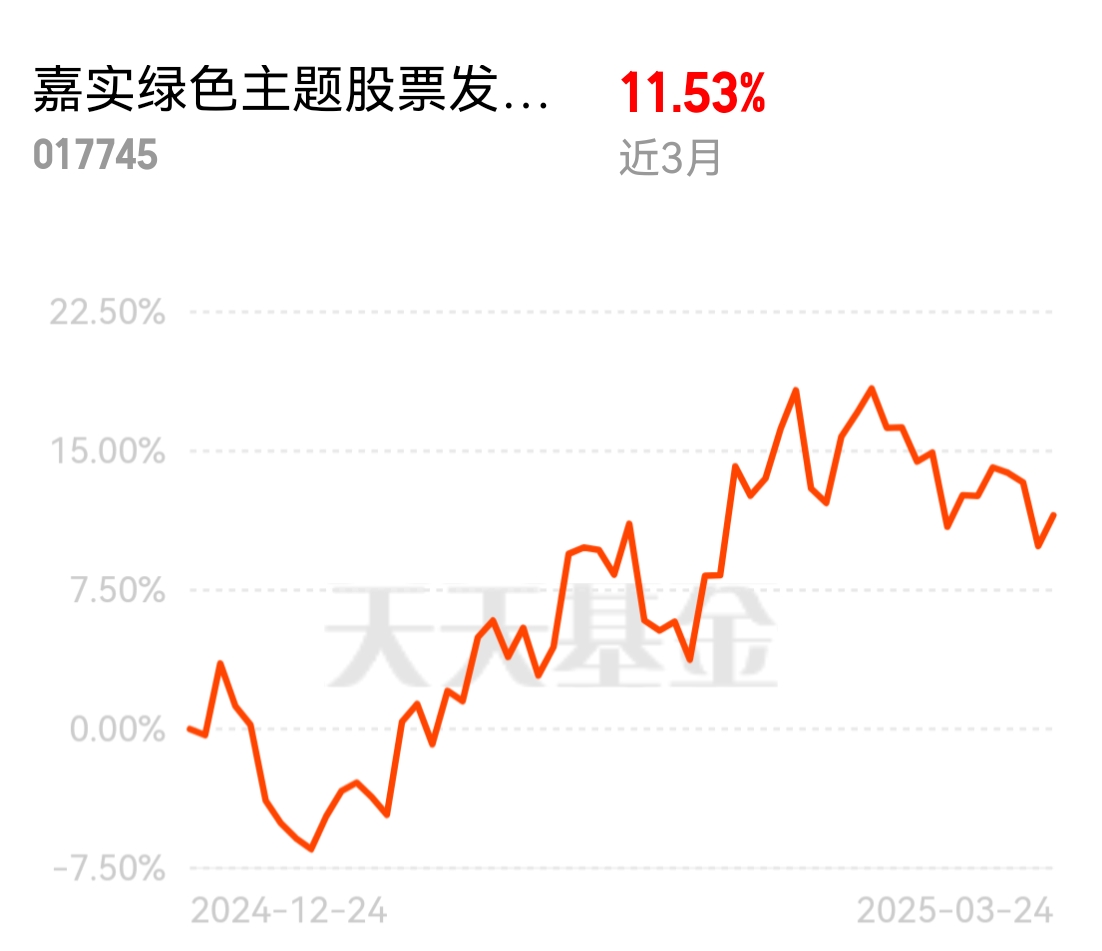 不错,这只基主要投资半导体科技板块,嘉实绿色主题股票C 近三个月涨11.53%,近半个月73.72%,各个阶段都非常的优秀,看了重仓都是优质公司,买入0费率,准备继续布局一波!