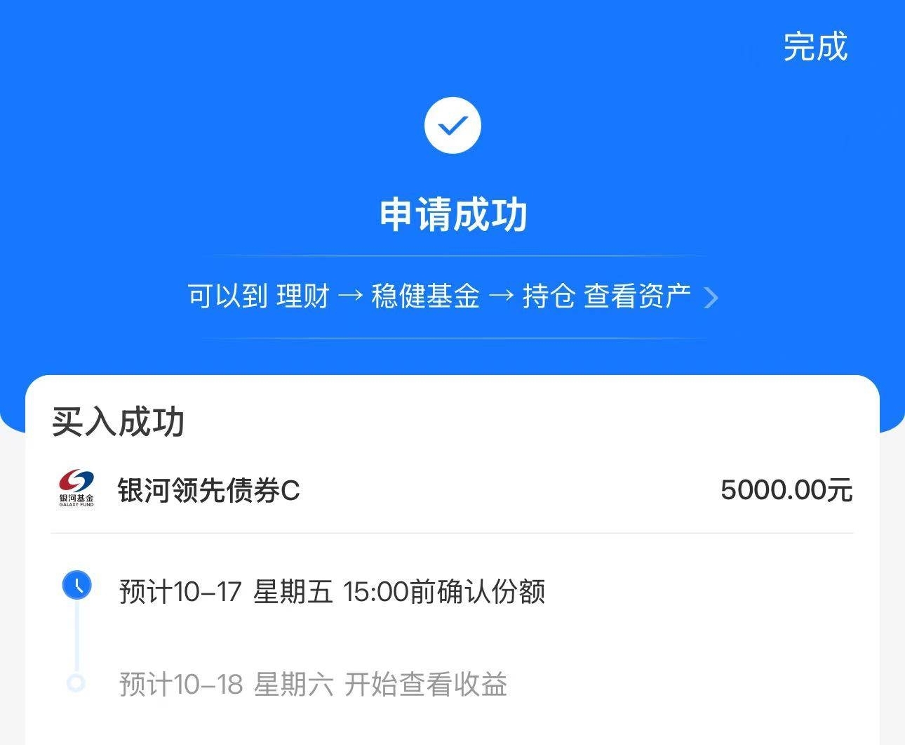 布局一波这个$银河领先债券C$ 这个固收的方向,昨天还能保持收了2个蛋呢 近一个月收了15个蛋呢,近一年业绩来说还是比较稳定,保持在5个点,对比一些纯债方向好多了