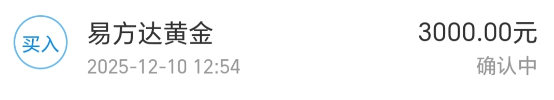今天我买入$易方达黄金ETF联接C(OTCFUND|002963)$3000块钱。