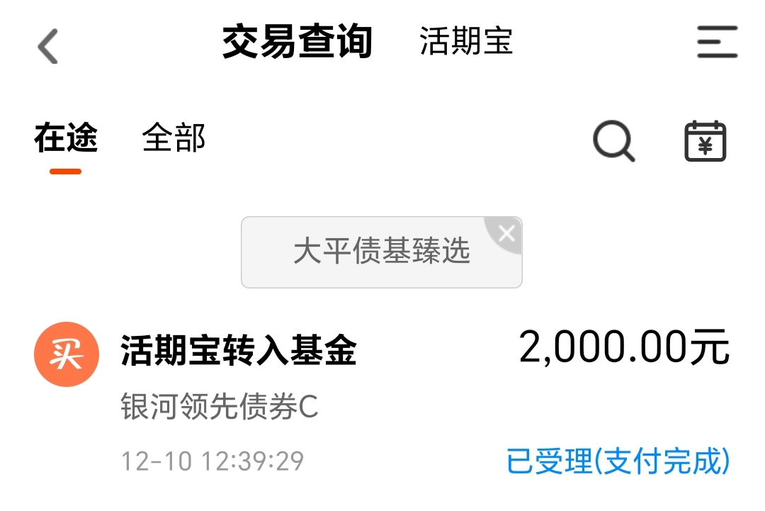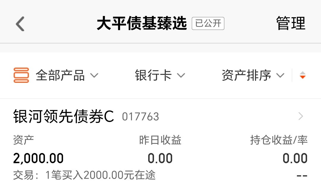 今天我买入$银河领先债券C(OTCFUND|017763)$2000块钱。