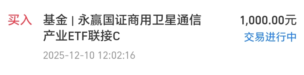 今天我买入$永赢国证商用卫星通信产业ETF发起联接C(OTCFUND|024195)$1000块钱。