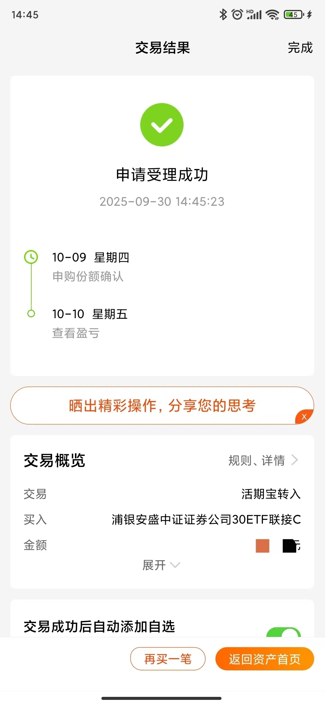 证券板块昨发力吃大肉了,今天回调也是是加仓机会!浦银安盛证券30联接C布局证券龙头,业绩优秀。目前慢牛逻辑不改,牛市里券商肯定会拉起来的,也是全市场不多的业绩好估值低的板块。$浦银安盛中证证券公司30ETF联接C$