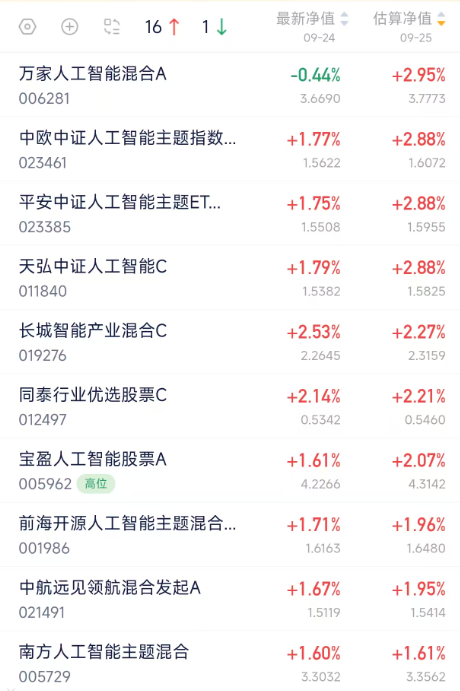 人工智能基金估值午间检阅,快捷查看涨跌,甄选真金