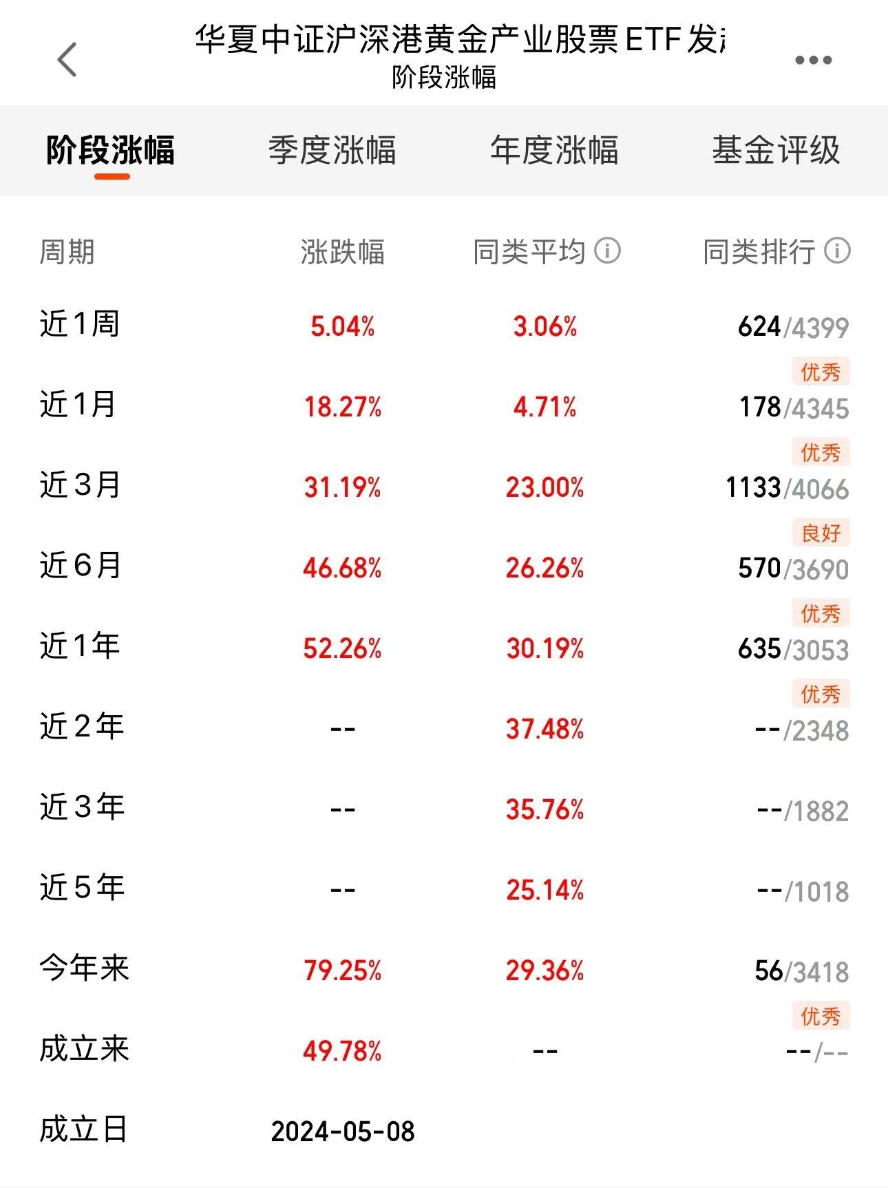 开盘即涨超5%,各阶段业绩均优秀,$华夏中证沪深港黄金产业股票ETF发起式联接C