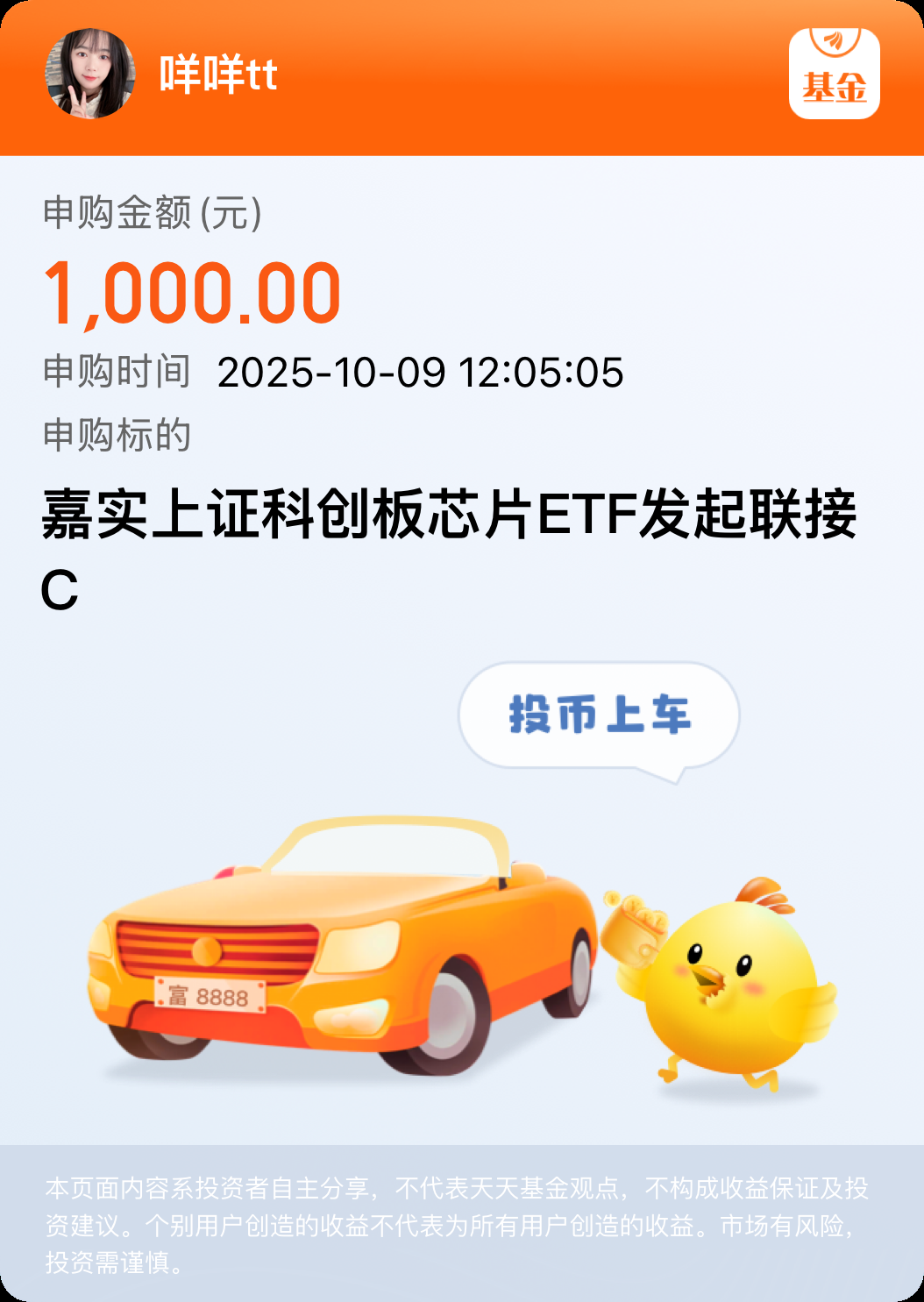 我今天加仓1000元 $嘉实上证科创板芯片ETF发起联接C(OTCFUND|017470)$