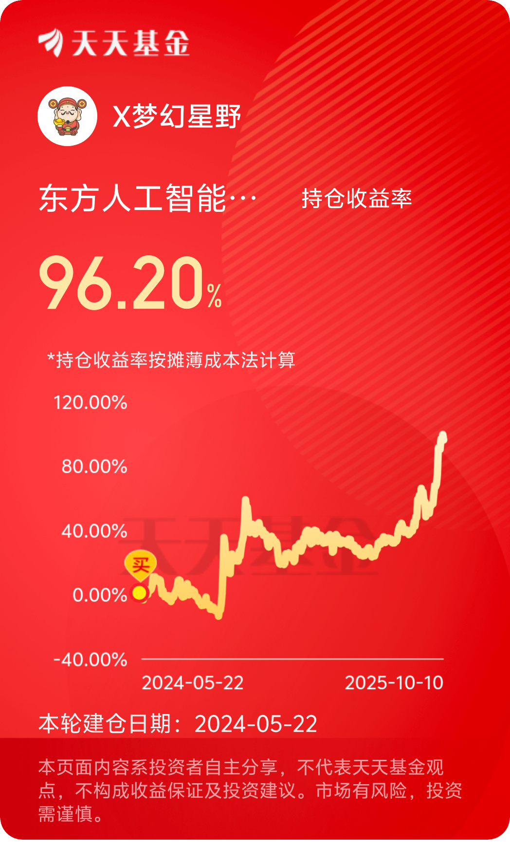 今天A股三大指数集体调整,创业板块跌幅居前,不过还好科创芯片比较争气,逆势上涨算是给今天的行情留了点安慰,这波属实争气!$东方人工智能主题混合C$ #晒收益#