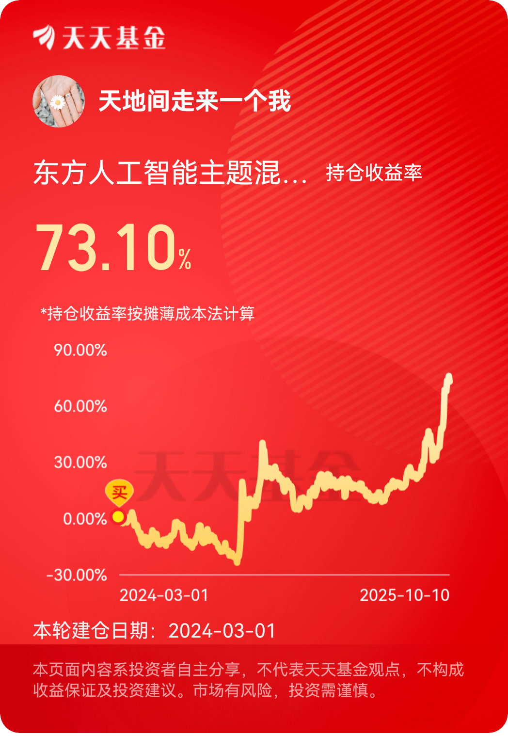 今天又大涨啊,没想到,半导体设备真是强啊。$东方人工智能主题混合C$ #晒收益#