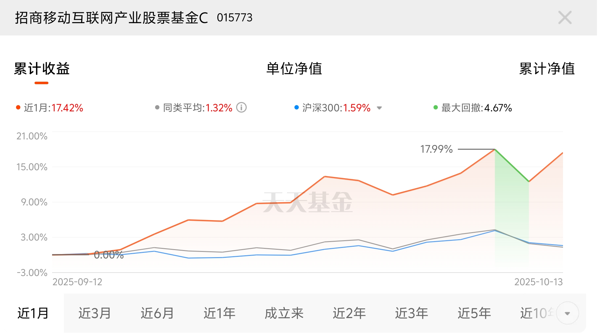 今天市场回暖明显,高景气赛道发力,移动互联网板块走在前。招商移动互联网产业股票C