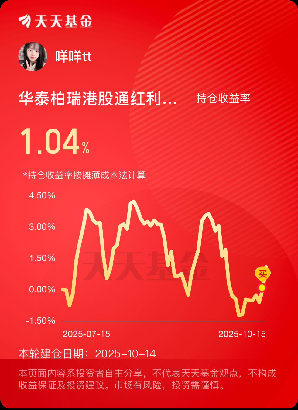 我加1000元 $华泰柏瑞港股通红利ETF联接基金C(OTCFUND|018388)$