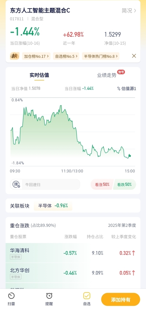 东方人工智能主题混合C今天跌了1.44%。人工智能板块今天表现一般,可能是短期没有啥利好消息,资金观望,基金就跟着跌了,期待后面有好的表现。
