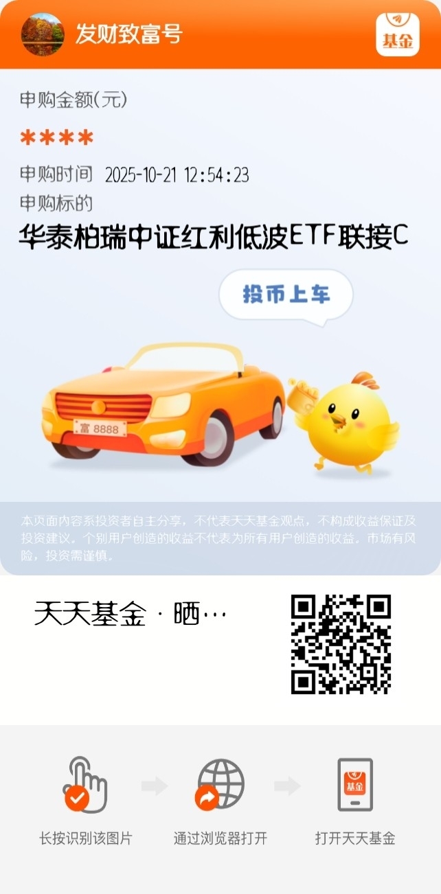 最近市场成交一直缩,波动还不小,四季度想稳点过,红利得选!华泰柏瑞中证红利低波 ETF 联接 C 近一月大涨 2.31%,每月都分红,连续 25 次了,防御靠谱还能拿收益,选它!