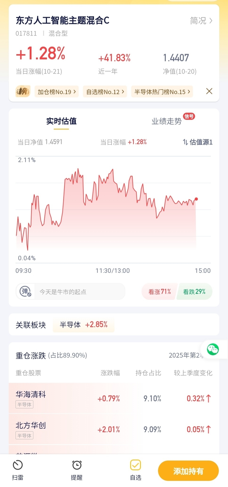 东方人工智能主题混合C今日预估涨幅1.28%!