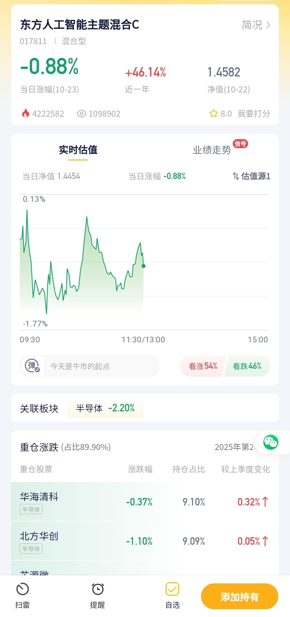 东方人工智能主题混合C今日预估跌幅0.88%!
