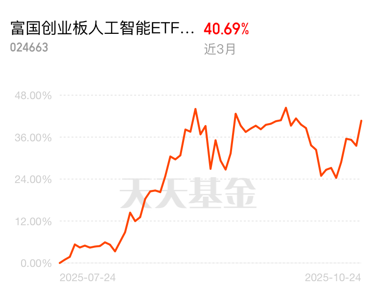 最近市场行情不错的,可以继续关注富国c创业板人工智能指数基金,近三个月收益超过百分之四十!$富国创业板人工智能ETF发起式联接C$