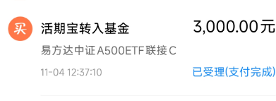 同学们,中证 A500 的 “回踩低吸” 机会来了!$易方达中证A500ETF联接C(OTCFUND|022460)$小沐今天加仓 易方达中证 A500ETF 联接 C 3000 元,就是看中它回踩后的布局价值!