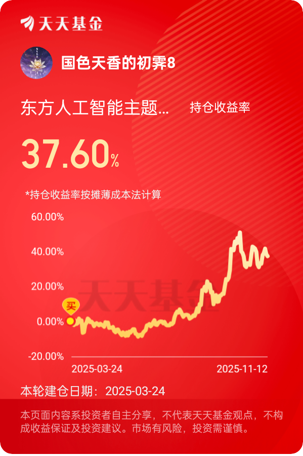 今天市场明显分化啦,半导体直接低开往下走了。不过这时候反而可以低吸点,先拿着等它后续回暖~$东方人工智能主题混合C$ #晒收益#