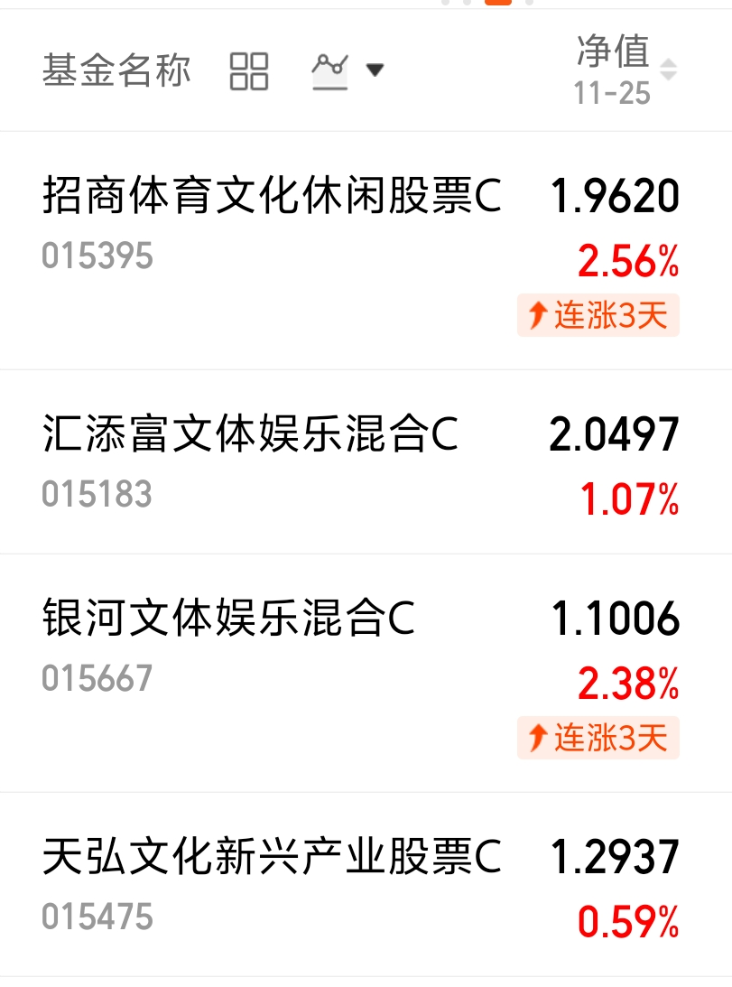 大盘最近表现还不错,继续上涨,昨天整体涨了不少,科技、新能源等板块都涨了不少,传媒表现也很不错呢!$招商体育文化休闲股票C$ 昨天大涨2.56%,太给力了!