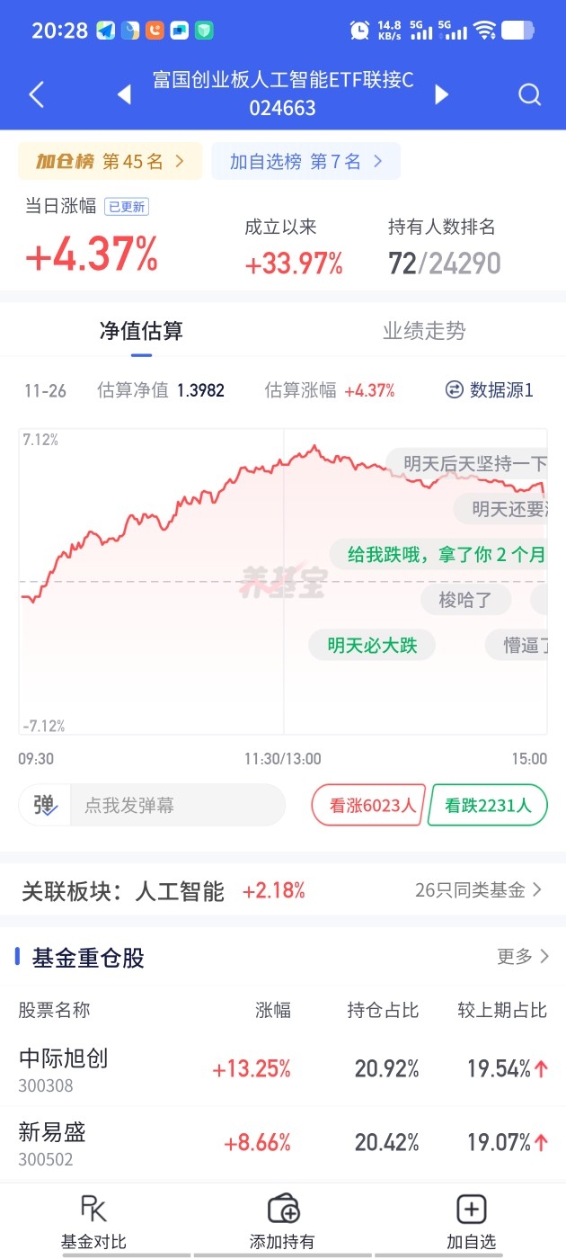 人工智能依然坚挺,涨几天了,$富国创业板人工智能ETF发起式联接C$今天继续吃肉
