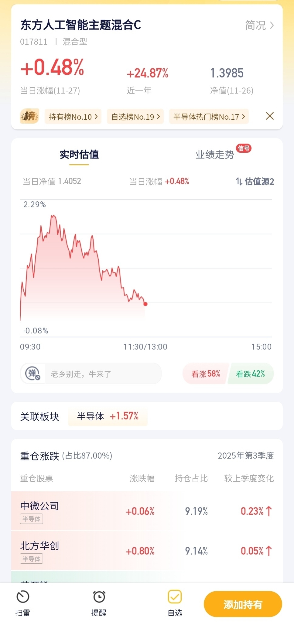 东方人工智能主题混合C今日预估涨幅+0.48%!