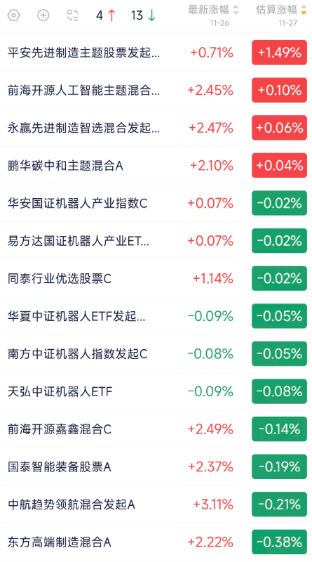 机器人行业基金估值盘后快报:收益全览,关灯吃面