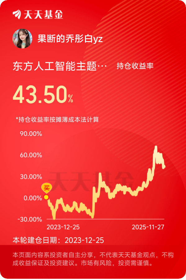 半导体这波回血太猛了!近4%的涨幅直接点燃市场,国产替代和技术突破双buff加持,持仓基金稳得一批,躺赢的快乐谁懂啊~$东方人工智能主题混合C$ #晒收益#