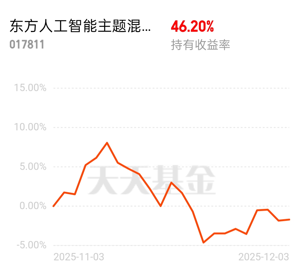 今天大盘跟着外围节奏拉涨 ,半导体板块放量领涨 ,上周五美联储降息预期升温的利好,刚好撞上半导体高景气周期 ,这波行情踩对了, 持仓收益又往上跳 了跳~$东方人工智能主题混合C$
