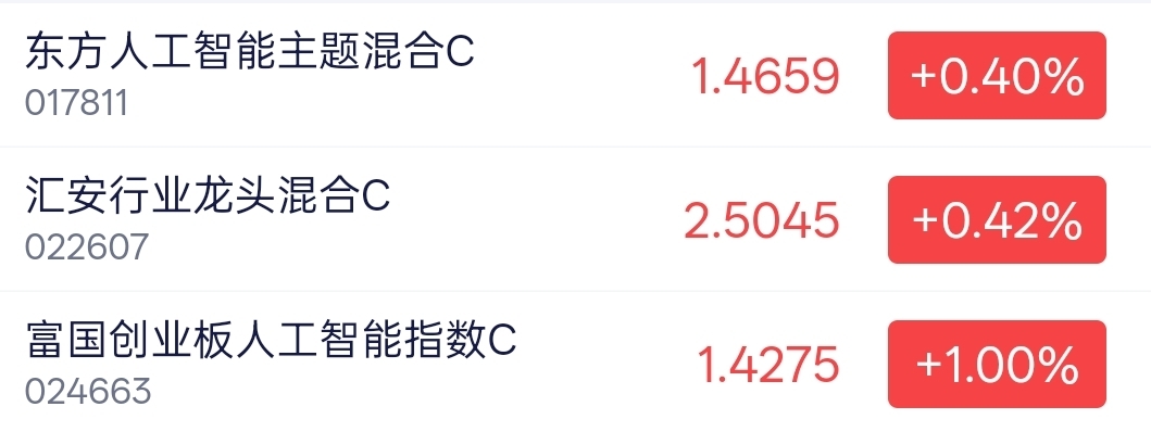 S东方人工智能主题混合C$估值上涨了0.40%,表现也很不错呢!