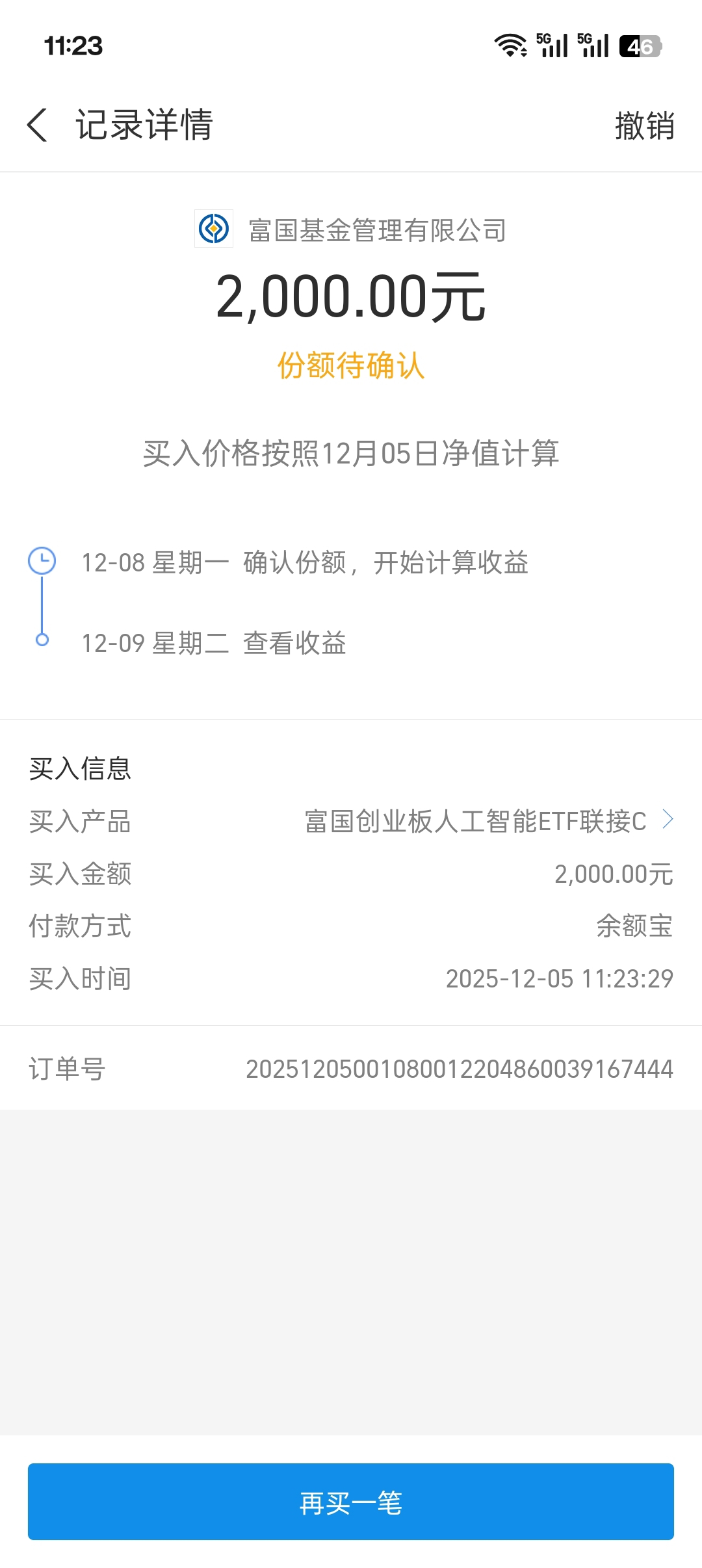 最近跟着大佬加仓的富国创业板人工智能E TF联接C$今天估值也上涨了1.00%,还是非常开心的,毕竟一开始我加仓的位置有点高,导致亏损不少,好在经过我不错的补仓,现在还亏不到一个点,今天过后应该就可以吃肉了,所以我今天打算继续加一笔,还是非常看好它的呢!