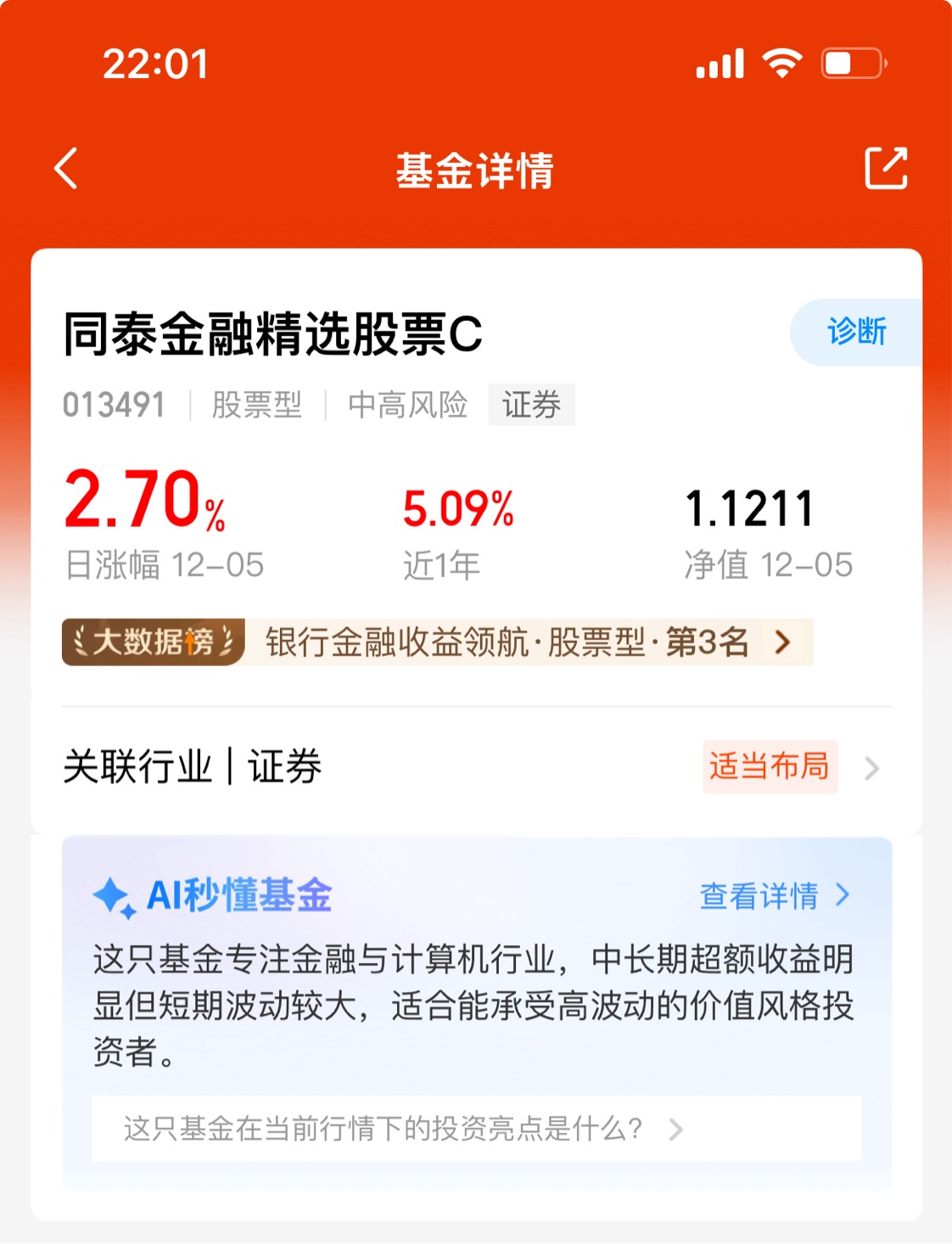 1)表现:保险板块涨幅超5%,券商板块涨近3%。中国太保涨近7%,中国平安涨近6%,中银证券、瑞达期货涨停。$同泰金融精选股票C$