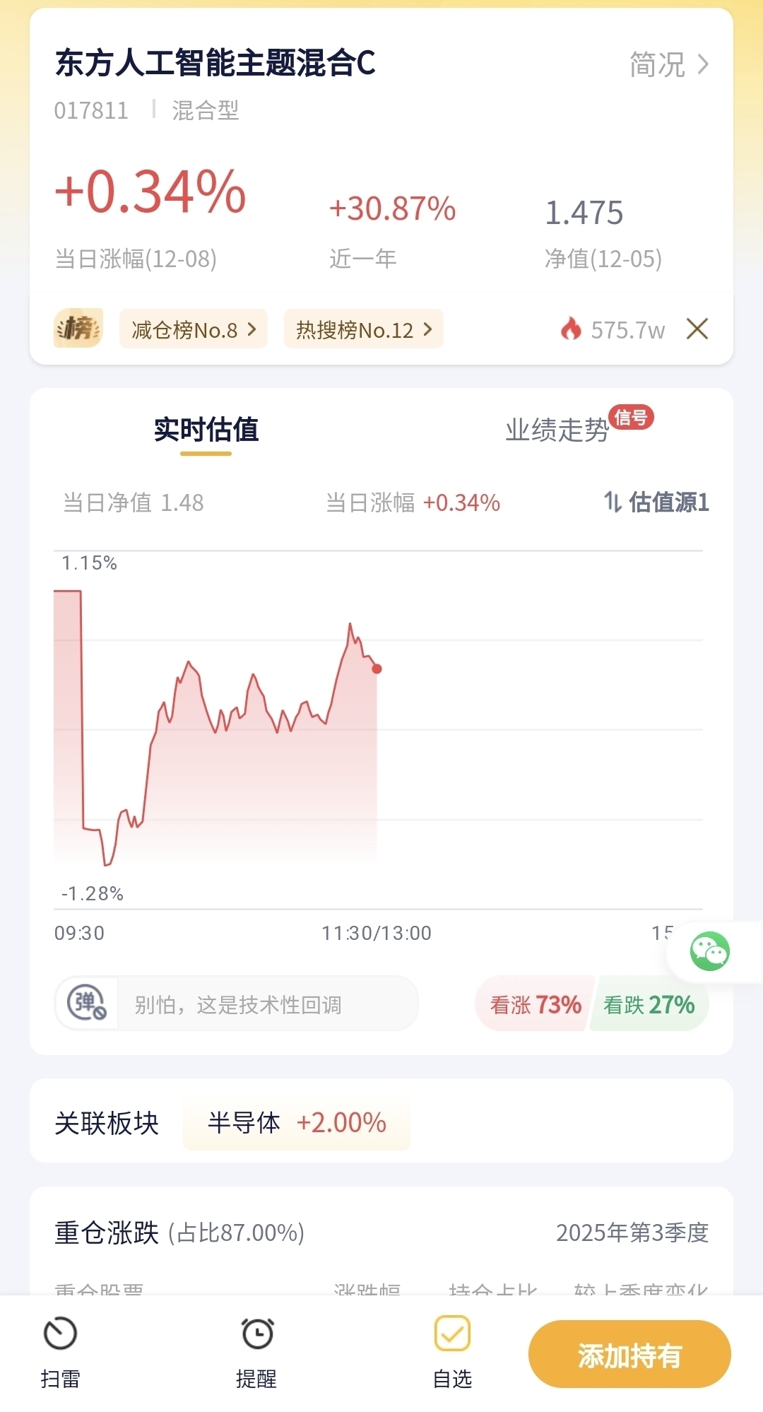 东方人工智能主题混合C今日预估涨幅0.34%!