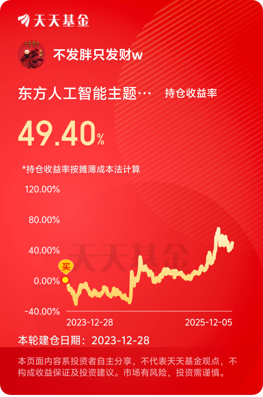 半导体还是很有潜力的,今天上午稳定上涨,看着自家的$东方人工智能主题混合C$ 也很给力,看近年来涨幅就高达44%,机会真是不等人啊!