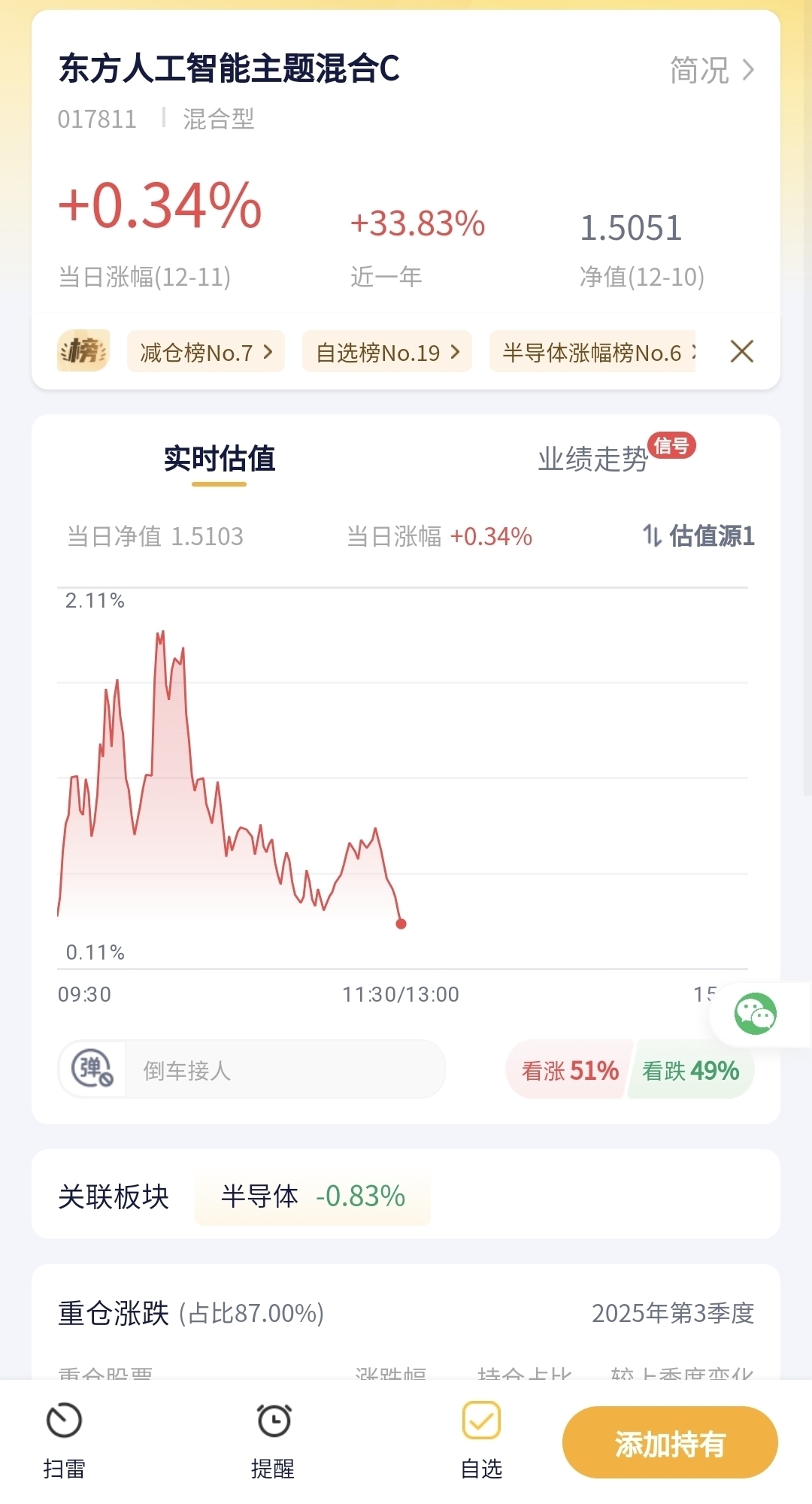 东方人工智能主题混合C今日预估涨幅0.34%!
