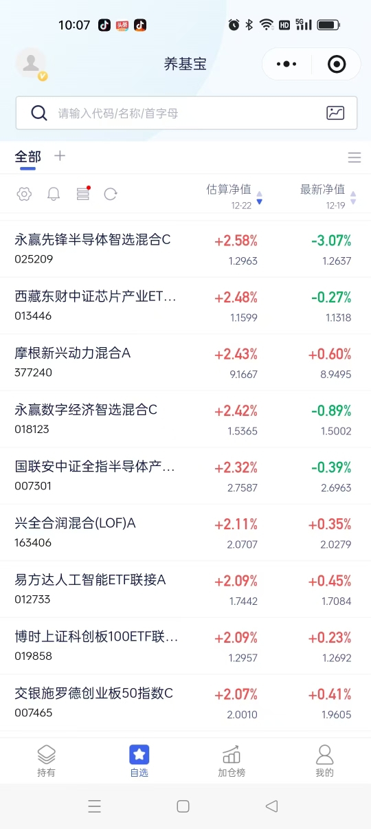 上午我看到我这段时间一直持仓又陆续的在补仓的基金在上涨,特别是人工智能、科技类的基金上涨,真开始。