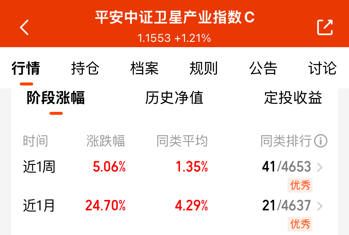 旧戏重演!上次朱雀三号入轨当天我记得商业卫星板块也是提前抢跑导致板块出现回调,今天长征十二号甲首飞,卫星板块再度回调...主力洗盘好手段,上次洗筹后,商业卫星板块接着猛拉,平安中证卫星产业指数C近1月就涨了24.7%!12月4号以来就只有2个交易日下跌,剩余11个交易日都是涨的。所以这次回调,我是无论如何都不会再上这个当的,趁着回调赶紧速度加上一份。