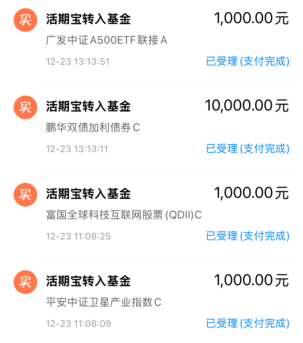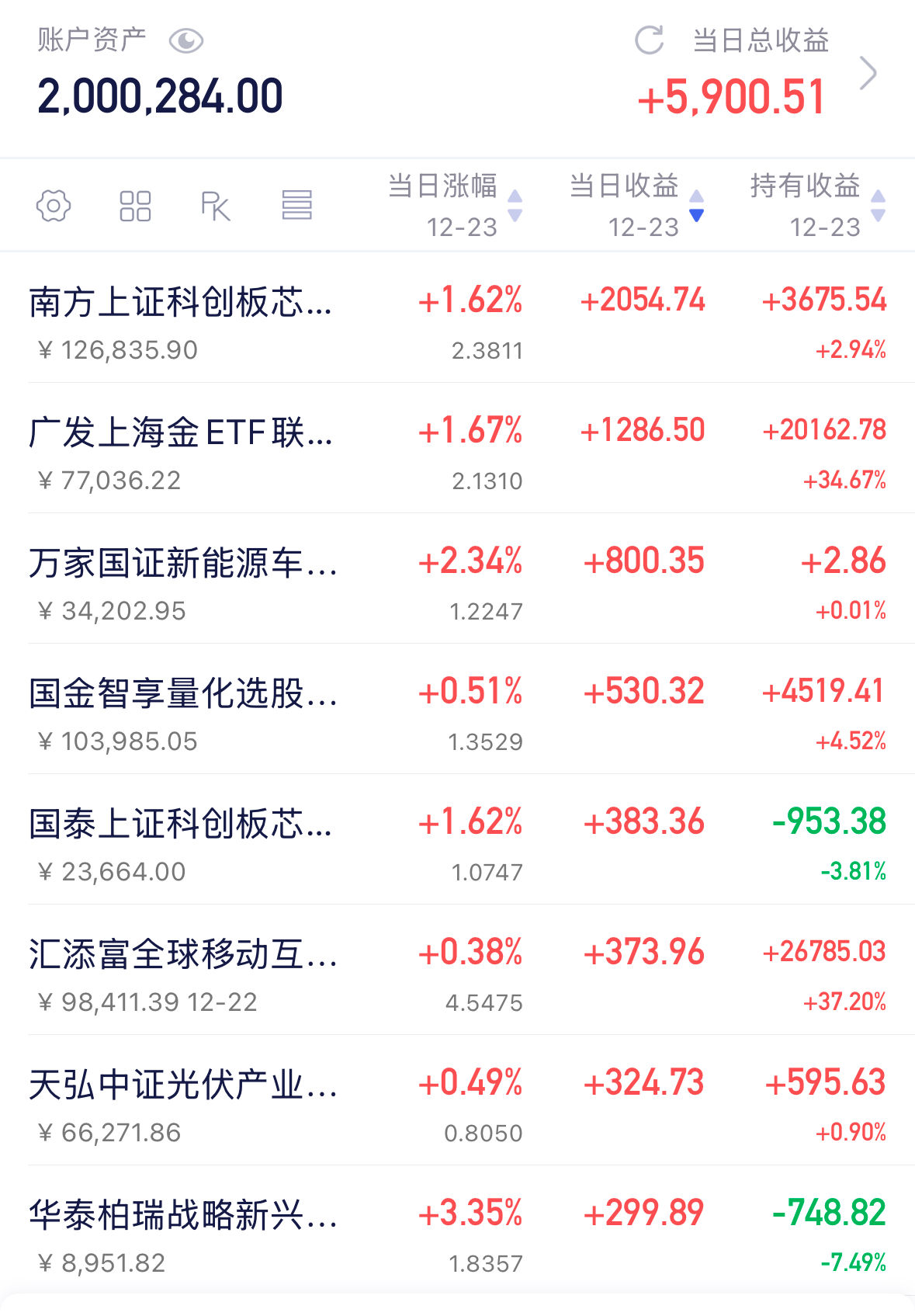 美股的日定投我也还在继续着,明天平安夜,美股将提前休市,周四全天都休市。纳斯达克近期涨的还不错,圣诞行情或已开启,所以我的日定投也不会轻易暂停。上周四涨了2.59%,上周五涨了2.06%,国富全球科技进攻力确实要强于纳斯达克,昨晚纳指小涨0.52%,今晚指不定国富全球科技还有惊喜。科技板块无惧AI泡沫论重返升势,加上美联储降息的强化,美股这波新高也是可期待的。