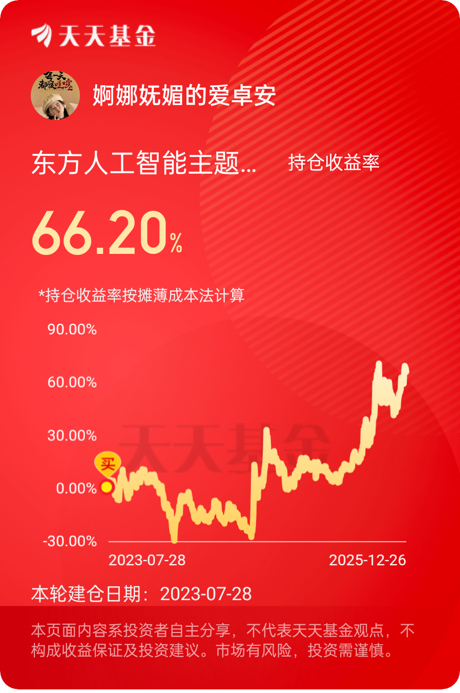 投资避不开波动,这是市场的基本规律,唯有沉心持有、拒绝盲目操作,才能成为最终的获利者。$东方人工智能主题混合C$ #晒收益#