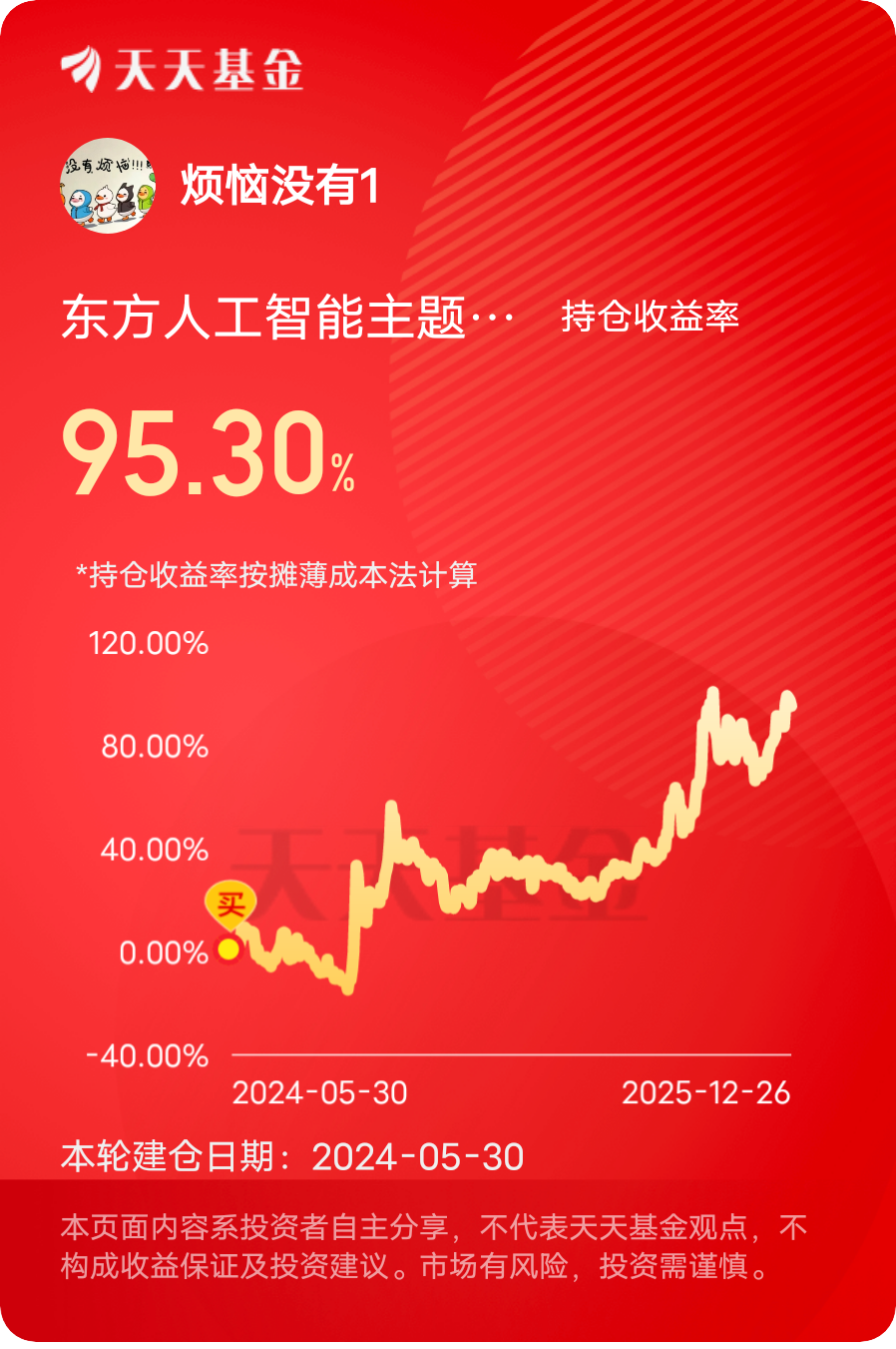 现在这种不上不下的情况的确挺磨人的,涨吧涨不多, 就怕明天回调,跌又受不了了,是不是纠结这落地为安了,还是那句话,长期看好人工智能,短期内的回调就是机会,现在拿稳就好,都知道人工智能涨起来有多猛,跌了咱还有利润垫底呢是吧。#晒收益#