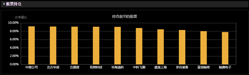 基金的前十大重仓股都是半导体领域的优质标的,像中微公司、北方华创、芯源微这些,都是半导体设备领域的龙头企业,拓荆科技、盛美上海则是在半导体材料和特种设备领域有核心技术的公司。我特意去研究过这些重仓股,基本都是各自细分赛道的佼佼者,研发实力强,市场份额也在不断提升。而且从持仓结构来看,没有过度集中在某一只股票上,分散了风险,这也是我持有期间比较安心的重要原因,就算市场有波动,也不会因为单只股票的调整而出现大幅回撤。
