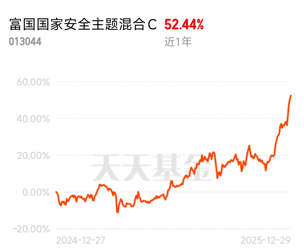 盯紧国家安全主线的闭眼冲!富国国家安全 C 业绩炸裂,近 1 年 52%+、近半年 48%+ 收益,近期日日稳步涨,重仓军工科技龙头,攻守兼备,吃肉稳得很