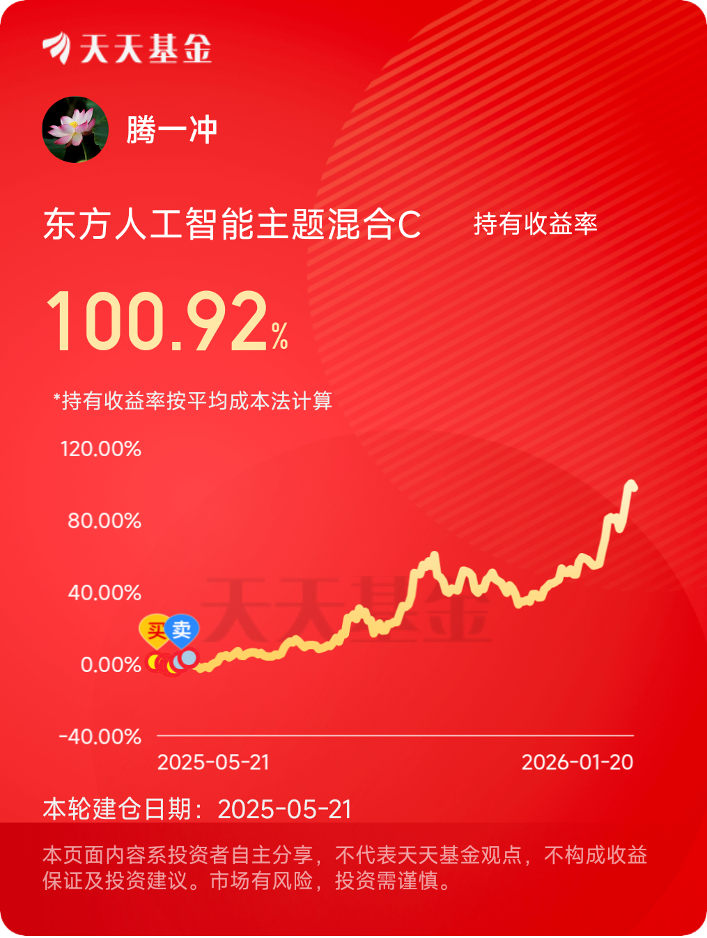 到2026年1月,当我全面盘点这笔投资时,数据显示:自2025年5月投资以来,该基金为我带来了100.92%的总收益,远超我过去任何一笔频繁操作的投资收益。